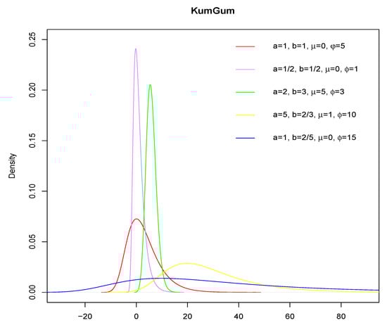 where and are shape parameters that influence kurtosis and skewness. The Kumaraswamy–Gumbel (KumGum) distribution is defined throughout (14) with the following distribution function (see Cordeiro et al. 2012):