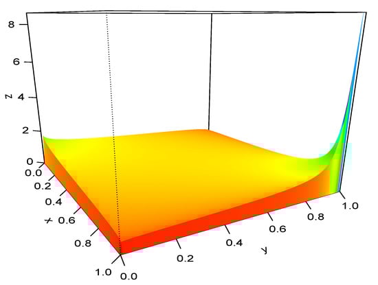 It is simple to note that (4) is a convex combination of and with weights r and . In addition, we want (4) to be continuous, derivable and with a continuously derivative density function, and for this scope we fix the following limitation: