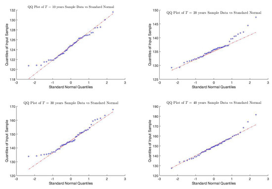 QQ-Plot between the unit-linked price input data and the standard normal distribution for maturities years.