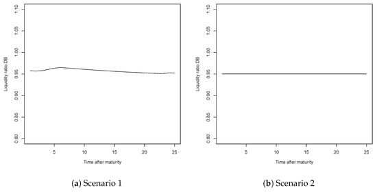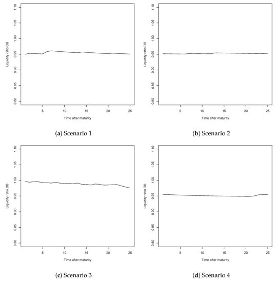 Liquidity ratios for the DB system, when utility of leisure is considered, for Scenarios 7 to 11.