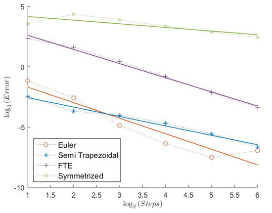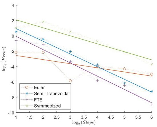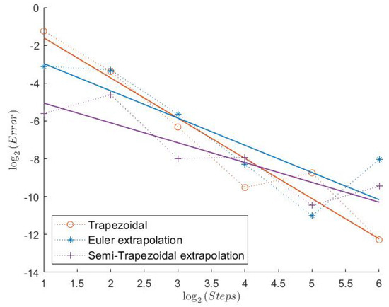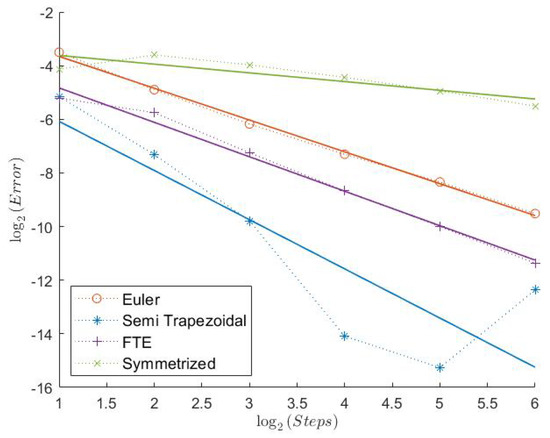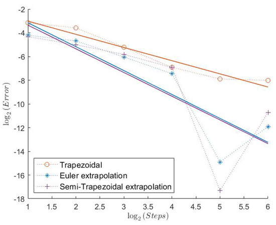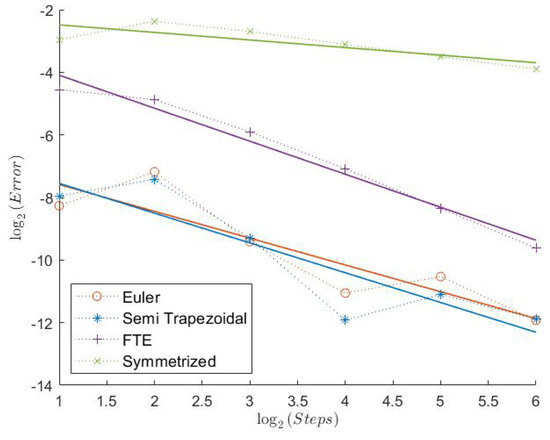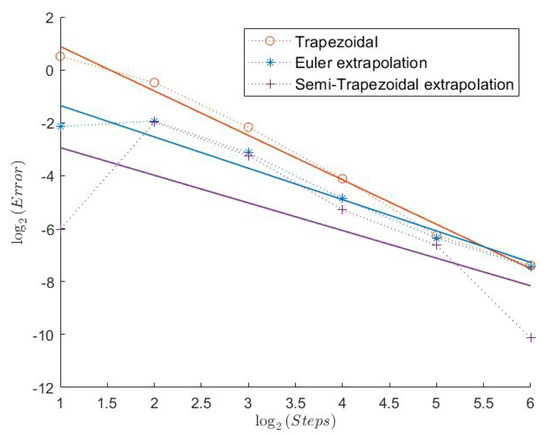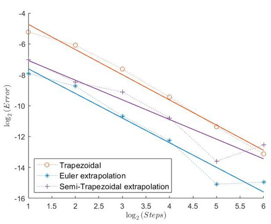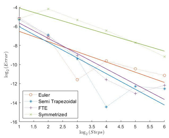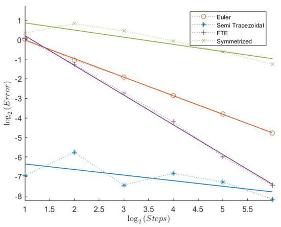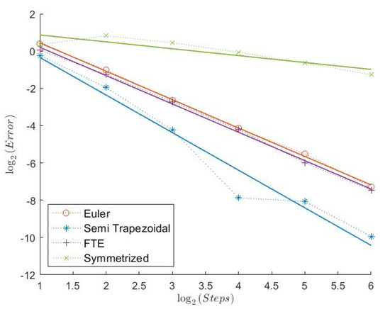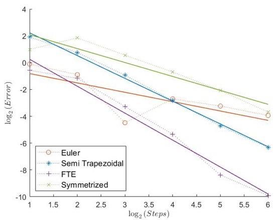 In Table 1, we can see the measured convergence rates for this model with a Feller index of The associated plots are shown in Figure 1, Figure 2, Figure 3, Figure 4, Figure 5 and Figure 6.