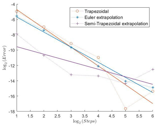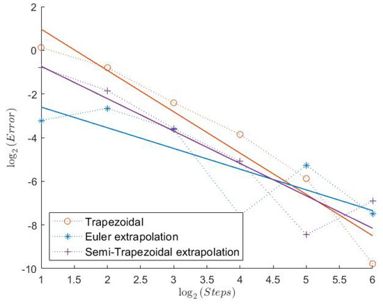5.4. Semi-Trapezoidal Rule: Calculations for , , and