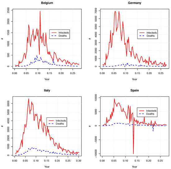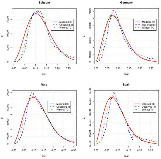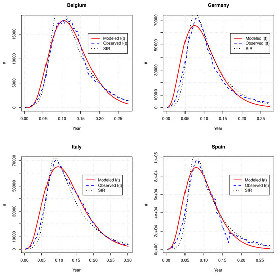 2) explains the evolution of the first wave of COVID-19 in Belgium, Germany, Spain and Italy.