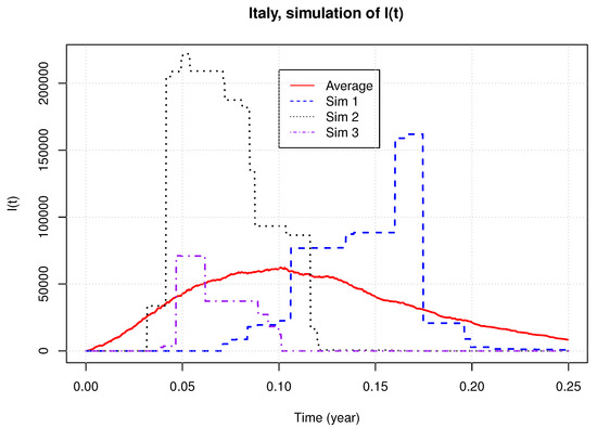 Notice that, by construction, the contagion rate per capita decreases as , the size of the infected population, converges to zero after having reached the epidemic peak. In a similar way to the SIR model, the solutions proposed in this article are then designed for explaining a single epidemic wave with, eventually, random recovery duration and discovery of local clusters of infected individuals.