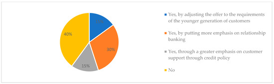 | 9. Has the COVID-19 pandemic revealed the need to change customer relations in your bank? | Yes, by adjusting the offer to the requirements of the younger generation of customers | 11 | 18 | 15 |