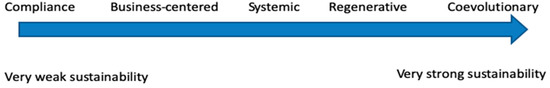 - Landrum, Nancy E. 2018. Stages of Corporate Sustainability: Integrating the Strong Sustainability Worldview. Organization & Environment 31: 287–313. [Google Scholar]