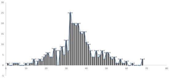 Figure 1 shows the Bitcoin monthly return volatility from 15 September 2014 to 15 September 2021. It demonstrates a big fluctuation between 2017 and 2018. In Figure 2, we provide a simple histogram of the monthly returns of Bitcoin from September 2014 to September 2021. The x-axis shows the monthly returns. The y-axis, the number of monthly observations. It has a mean of 1.9%—that is the average weekly return through time, and is positive, an obvious point, given Bitcoin’s overall performance since birth. The standard deviation of the distribution gives us an idea of the average deviation that the returns exhibit around the mean and it is 10.63%, quite large. The distribution is slightly positively skewed, indicating a tendency for the tail of the distribution to stretch more to the right indicated by the length of the right tail, which is longer. Finally, a positive kurtosis value indicates an (albeit small) tendency for more of the observations to reside in the tails than at the centre, and hence the characteristic leptokurtic shape of the distribution (thin centre, fatter tails). The grey curve depicts a ‘normal distribution’ as a comparison.