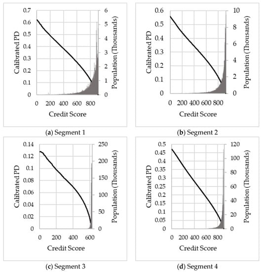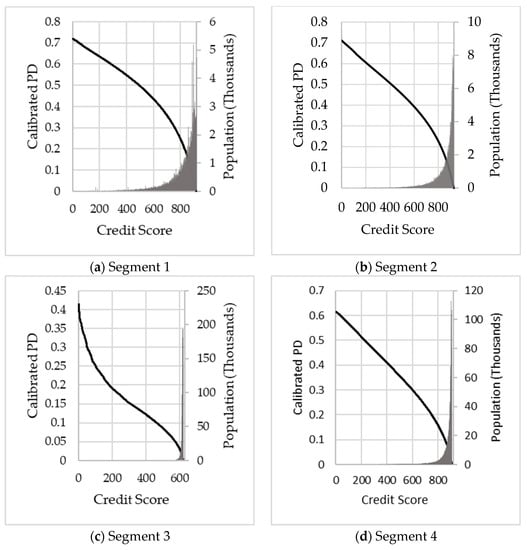 The validity of the calculated PD relies on the account’s scoring results, i.e., distinguishing power of the credit score used; and