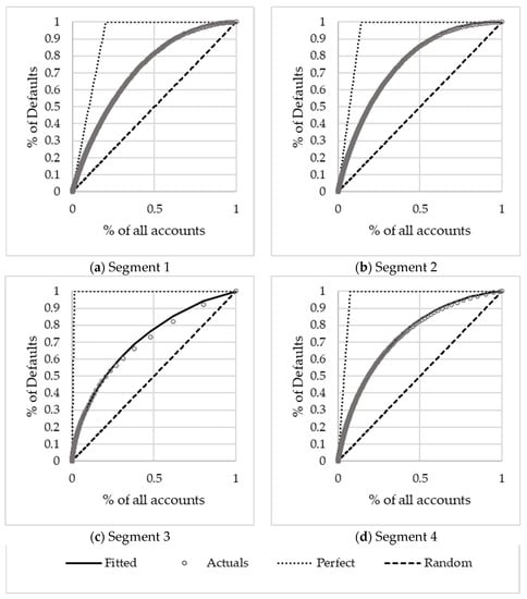 Until now, segment level granularity has been achieved, but more granularity is required to estimate the IFRS 9 PiT PD accurately. In this section, a methodology is proposed to yield account level granularity for the PD estimates. The credit score, in conjunction with a calibration technique, will be used. Any type of credit score that yields good risk differentiation can be used for this approach. Behavioural scores typically provide the best predictive power for revolving retail credit portfolios. In this paper, we used the Lorenz curve as the calibration method (