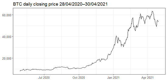 Bitcoin’s daily closing price 28 April 2020–30 April 2021.