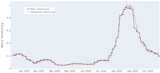 Predicted volatility and historical volatility for the period January 2020–October 2020 (source: authors’ calculations).