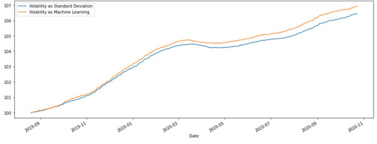 - January 2020–October 2020 comparing the performance of portfolios with the historical volatility and the predicted one, which corresponds to the diffusion of COVID-19.