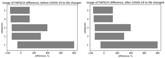 The relative difference of FINTECH usage before and after COVID-19 compared to daily life change. Source: own research.