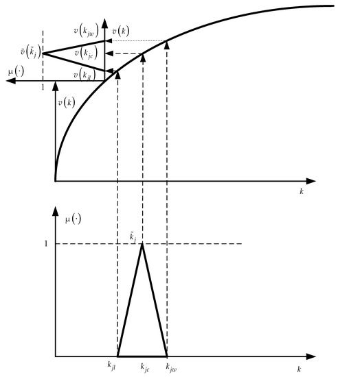 Using the given fuzzy number and the graph of the function , we define the characteristic points , , and the corresponding fuzzy number . In exactly the same way, fuzzy value estimates for other prospect outcomes are determined.