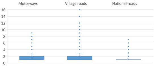 This option was chosen based on information set out in the box diagrams shown in Figure 6. As can be seen, the variance of values is greater for the dataset relating to motorways and village roads.