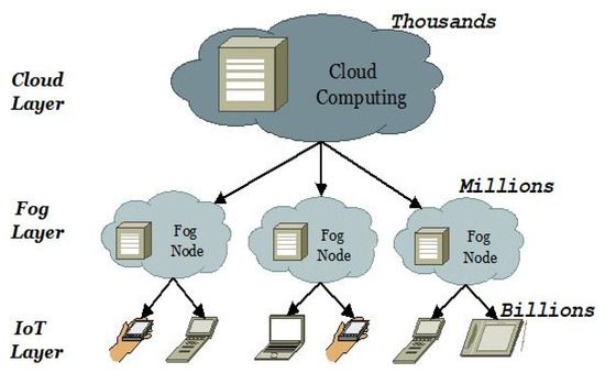 Currently, IoT-enabled smart devices play a crucial role in e-healthcare systems. IoT engagements have ushered in the notion of CC. CC and its expanded variants, such as FC and edge computing (EC), have recently played an important role in real-world applications [8]. The significant delay of CC makes it unsuitable for real-time applications such as e-healthcare. The FC at the network edge can run applications near data sources and act as a connection between endpoints and cloud servers [9]. Both FC and CC platforms have similar intakes, resulting in the advantages of FC with the use of latency reduction in cloud servers [10]. Concerns regarding readability, scalability, and other aspects of e-healthcare are addressed by Fog-based systems [11]. The IoT-Fog-Cloud integrated approach aims to improve communication between nodes, thereby conserving the bandwidth that can be used in areas such as disease diagnosis and improved prediction accuracies. Figure 1 depicts the IoT-Fog-Cloud integration.