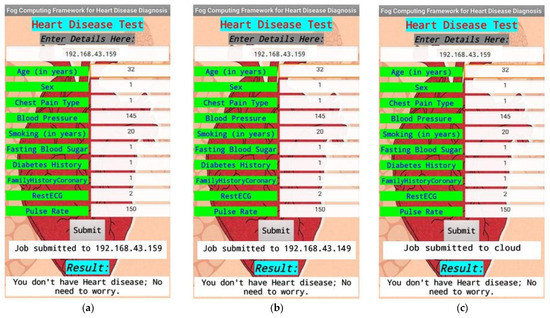 The FRIEND.apk, an Android interface created for this effort using MIT’s AppInventor, will be employed in a diversity of Android-compatible GTDs to gather sensed data from individuals [34]. It acts as an interface for the MBP, FWNs, and IHSs. The data input from the patients was sent to either the MBP, FWNs or CCNs, respectively, as depicted in Figure 4. A setup with various hardware configurations as evaluation hardware was implemented for the trials in this study. These configurations included an MBP (Dell with Windows 10 64-bit OS, Core i3, and 6 GB RAM) and a gateway device (Android Xiaomi A2 with Ver. 10), FWNs (four records of 4 GB SDRAM-based Raspberry Pi 4), and a public cloud (Aneka platform and AWS with Windows server). Additionally, the scalability of the proposed methodology was evaluated using 50 smartphones from various individuals in various configurations.
