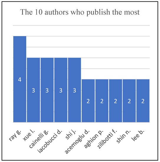 Figure 3 shows that the researcher who has developed the most work on the subject is Gautam Ray, with a total of four articles, who has an enormously relevant and impactful career in the area and is highly prestigious in his field of research.