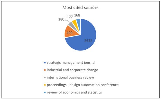 In Figure 6, of note is the presence of both journals and a conference pertinent to the subject, as well as one source overwhelmingly showing the highest number of citations, 2632.
