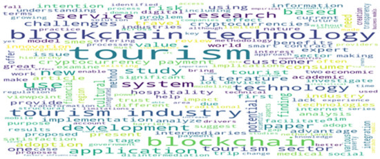 Similarly, for smart tourism studies, many recent papers are exploring a new trend post-2019. Words such as development and sector, which were previously associated with tourism, are now linked with blockchain directly [95,96]. We argue that smart tourism is now exploring blockchain and new technology for innovative applications in tourism. Regarding tourism, the words do not have a drastic change. They are the same throughout the years of consideration.