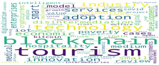Here, blockchain indeed argues for smart tourism in all the selected articles. Previous studies signify blockchain in smart tourism. Blockchain connects tourism with words such as the smart destination. The findings of this research will help future scholars in terms of guidance in employing ML in text mining [97]. This technique will help in enhancing their research ability. As several research publications are published in various streams, conventional research for literature review is fast becoming more impractical and complex, requiring a lot of time and effort from the researcher [98]. Data extraction and a reduction will be smoother and more technical with text mining by mL tools. The ability to review the title, abstract, and full texts of an article within the same ML tools will undoubtedly save valuable time.