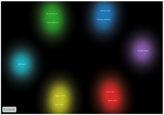 In 2018–2021, coauthors are publishing and have a strong network. Twenty-seven authors from 30 countries show strong weighted strength among themselves, as shown in Figure 9. Authors of major geographical distributions are mainly from the People’s Republic of China, UAE, Canada, Austria, the UK, India, and Switzerland. All these coauthors have 45 papers among them.