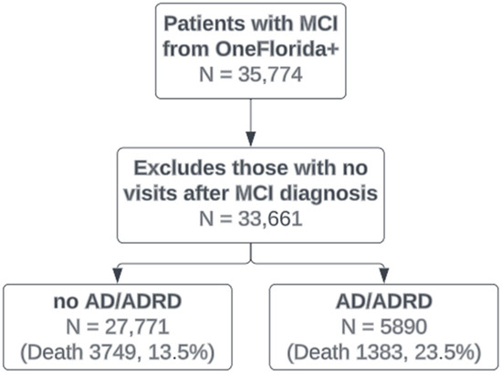 Chen, Z.; Yang, Y.; Zhang, D.; Guo, J.; Guo, Y.; Hu, X.; Chen, Y.; Bian, J. Predicting the Risk of Alzheimer’s Disease and Related Dementia in Patients with Mild Cognitive Impairment Using a Semi-Competing Risk Approach. Informatics 2023, 10, 46. https://doi.org/10.3390/informatics10020046