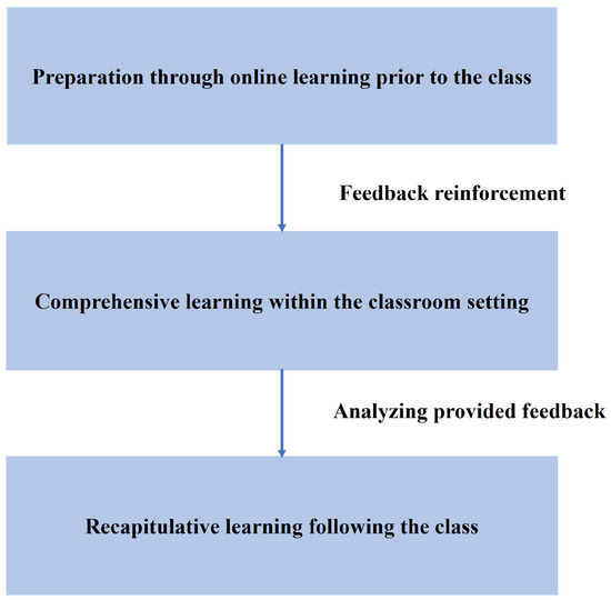 There are numerous events in the actual world that fit this description, provided that one is aware of the current state of a given system. One can infer its future state by looking at the present rather than at its past. This occurrence is referred to as the Markov random phenomenon. The Markov model is a mathematical representation of this random event [31]. The model developed in [32] is more accurate and reasonable for assessing the quality of teaching for the teaching process that is directly related to the attribution of teaching quality. Figure 4 illustrates the fundamental steps of blended learning using the Markov algorithm.