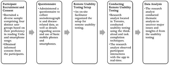 Traditional usability testing involves in-person sessions, leading to recruitment challenges related to time constraints and social distancing, especially during the COVID-19 pandemic. The pandemic accelerated the adoption of remote usability testing, offering convenience, and flexibility, and overcoming geographic limitations, promoting ongoing research and participant engagement [16]. Since then, remote usability testing has become the default approach to maintain advancements in technology evaluation or research [16]. Remote usability testing has been explored in some studies involving older adults and individuals with limited mobility, particularly during the COVID-19 pandemic, when technology became pivotal for their remote access to services and social interaction [18,19,20]. Nevertheless, there is a scarcity of evidence regarding the utilization of remote usability techniques in countries like Pakistan and other low- to middle-income nations. As technology continues to advance, the field of remote usability testing is expected to gain greater recognition in the literature. The findings of this study will contribute to the body of growing evidence concerning remote moderated usability testing in resource-limited environments.