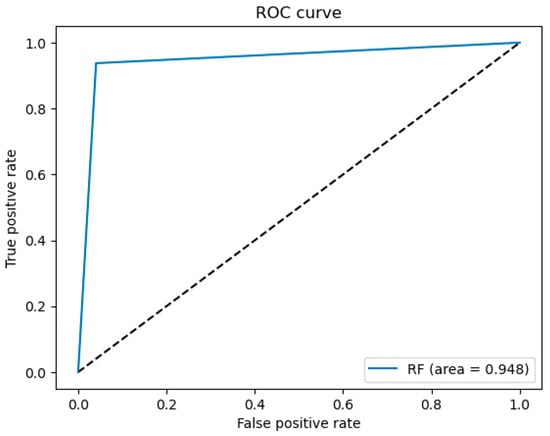 We also used the AUC score and the ROC curve to evaluate the performance of the classification models. The receiver operating characteristics (ROC) curve constitutes a crucial performance metric that reflects the ability of a model to differentiate between classes. The AUC score represents the area under the curve where a higher AUC score indicates that a model is better in differentiating between classes. The ROC curve is computed using the true positive rate (TPR) and false positive rate (FPR). TPR and FPR are calculated as follows: