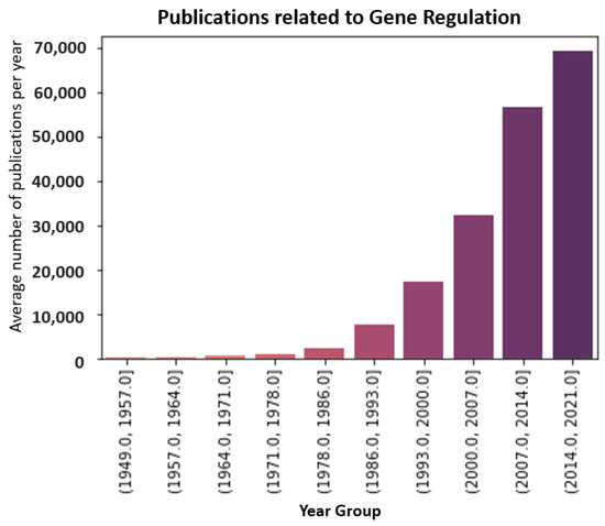 Figure 1. The biological literature related to gene regulation published over the years according to Medline [7].