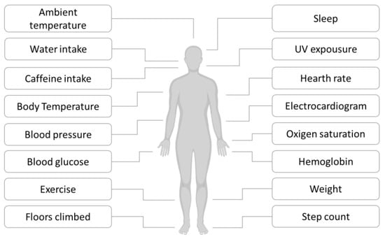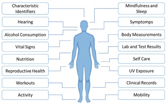 - Data Types | Apple Developer Documentation. Available online: https://developer.apple.com/documentation/healthkit/data_types (accessed on 6 August 2023).