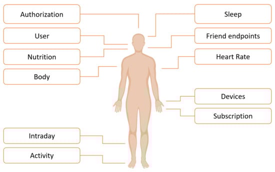 - Web API. Available online: https://dev.fitbit.com/build/reference/web-api/ (accessed on 7 August 2023).