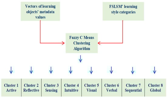 After labeling, the constructed vectors of the metadata values of each LO were classified into any one of the eight learning styles by using the FCM algorithm.