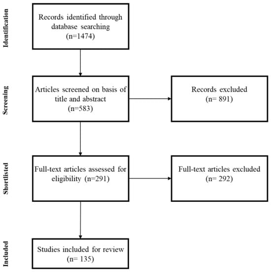 The data collected from the 1474 references were arranged into a digital folder, with files in both Excel and Word formats, based on the compatibility features of the databases utilized. Studies that did not align entirely with the research objectives of this review and papers lacking empirical research or literature reviews were excluded. Criteria regarding the subjects, content of articles, and inclusion and exclusion were applied. Inclusion criteria represent the necessary qualities a data source must possess to be considered for inclusion in this study, while exclusion criteria outline the characteristics that disqualify a data source. These criteria were instrumental in identifying 135 relevant journals published between 2004 and 2024.