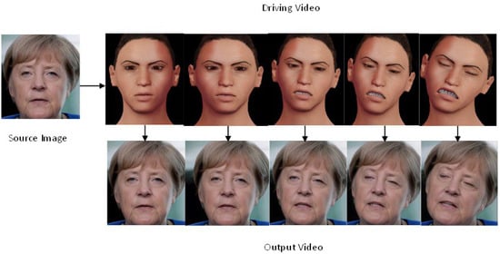 - Siarohin, A.; Lathuilière, S.; Tulyakov, S.; Ricci, E.; Sebe, N. First order motion model for image animation. Adv. Neural Inf. Process. Syst. 2019, 32, 7137–7147. [Google Scholar]