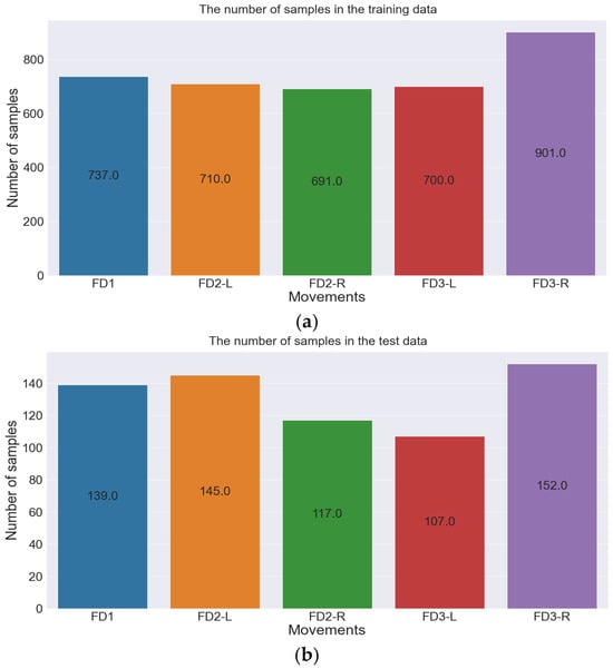 Number of samples in training and test dataset. (a) The number of samples in the training dataset. (b) The number of samples in the test dataset.