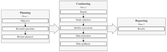 The present study is primarily based on the guidelines for conducting systematic literature reviews in software engineering proposed by Kitchenham et al. [39] and the update by Petersen et al. [40]. According to these guidelines, the SMS process consists of three main phases, each composed of activities. Figure 1 shows a graphic representation of the systematic mapping process adapted from the earlier proposals. Three large blocks (shaded in gray) can be seen in them, representing the phases and the sequence of activities that compose them within each of them. The following subsections describe the most relevant characteristics of these activities, except for the first activity of the Planning phase, “Objective”, which was described at the beginning of this section.