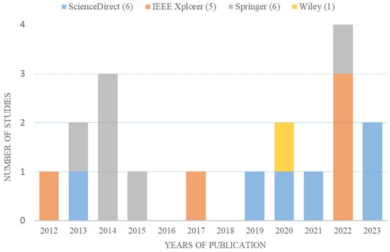 The search string was constructed from the keywords listed in Table 2. It is worth mentioning that some keywords were not included in the final search string for the reasons described below. Considering that the search string must match the title, abstract, or keywords of the studies, after conducting some test searches, we found the following issues: