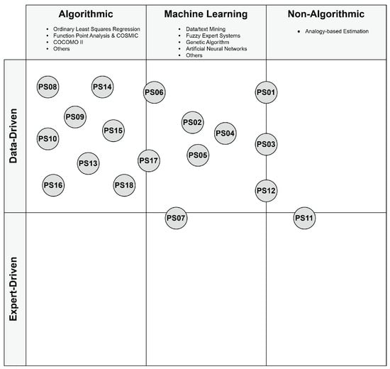 | RQ2 | Based on | If the estimation techniques used, analyzed, or compared are data-driven or expert-driven. | Data-Driven or Expert-Driven. |