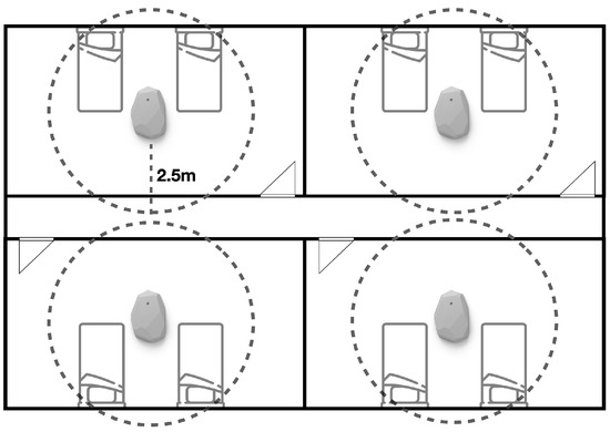 Figure 2 shows a four-room hospital floor design with one beacon assigned to each room: