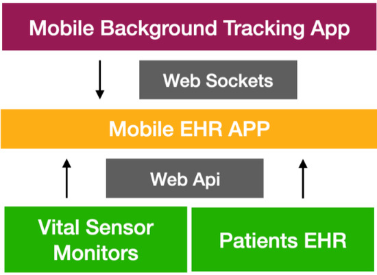 As presented in Figure 1, a Mobile background tracking app was developed in React Native, whose sole purpose is to listen to proximity beacons and broadcast through Web sockets to any “Client” app that may require that information, including our context-aware EHR.
