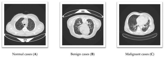 The dataset used in this study comprises 1097 CT scan images sourced from a publicly available medical imaging database tailored for lung cancer research. The images, derived from 110 patients, are categorized into three classes based on radiological and oncological evaluations [].