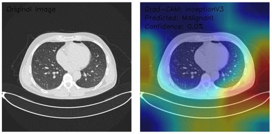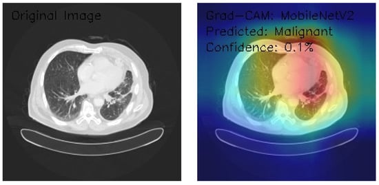 Grad-CAM visualization using MobileNetV2 for lung CT scan with malignant prediction. (Source: author’s analysis from data, 2024).