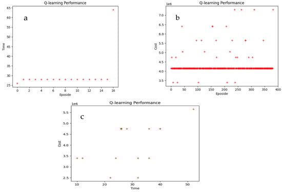 RL results: (a) time, (b) cost and (c) time and cost.