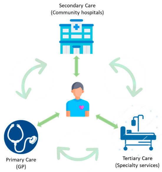 With electronic health records (EHRs) being ubiquitously used, volumes of patient data are being collected and stored electronically. Information contained within the EHR data provides a phenomenal opportunity for research and to provide improved and optimized care. However, patient care in the case of mental health is spread across primary, secondary, and tertiary care providers, with each using their own form of EHR system, as illustrated in Figure 1. A study by Dorning et al. [3]. revealed that emergency admissions were four times more likely among people with mental illness than other people. It is imperative that clinicians obtain complete and timely access to patients’ data, and systems that do not offer data sharing across heterogeneous data storage and management systems are a barrier to this. Further, data captured in healthcare IT systems are not in an easy-to-use structured format. Most of the important patient information is in free-text form by clinicians, nurses, and caregivers during their assessment of patients. A lot of meaningful information is held in free-text notes that serve as communication among healthcare professionals in day-to-day clinical practice, but have little to no standardization of format, content, or quality [4,5]. There could be abbreviations, typos, and grammatically unstructured sentences. To manually sift through the unstructured content is time-consuming and impractical on a large scale.