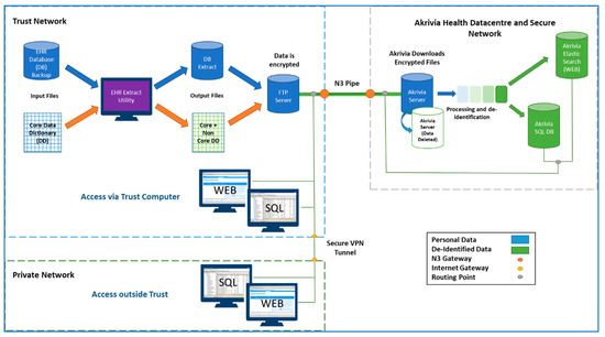 Dataflow pipeline for secure and regulated access of EHR data for research purposes. (Trust—an organization that provides secondary health services within the English and Welsh National Health Service).