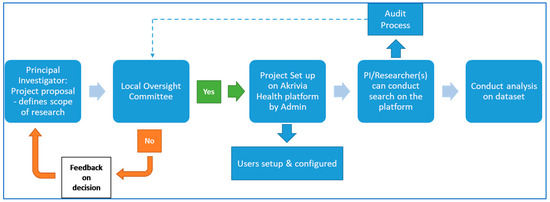 Workflow of governance approval process to access Akrivia Health data for research.