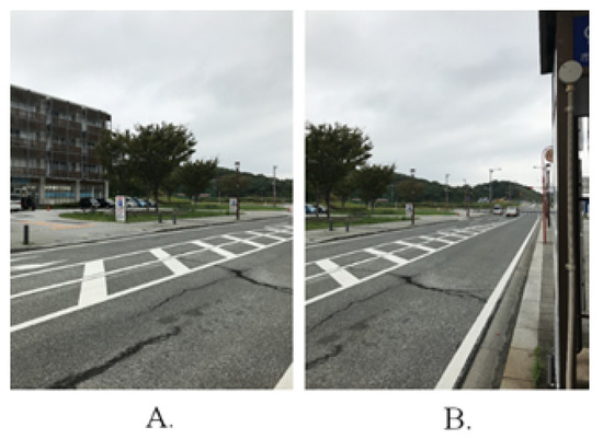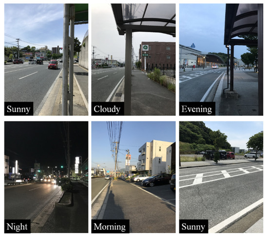 In addition to bus detection, the dataset also supports bus POV classification, which focuses on identifying whether a specific camera viewpoint is optimal for visually impaired users at bus stops. This dataset includes a range of images from various bus stops, with different times of day, weather conditions, and road patterns, which are crucial for detecting buses and recognizing environmental features. Figure 3 showcases the different patterns of road areas with varying illuminations between daytime and nighttime. The dataset addresses one of the key challenges in visual data processing—variations in lighting—by including images captured under different illumination conditions.