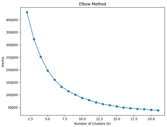 Next, we applied the K-means clustering algorithm to the standardized feature matrix and then computed the distance of each point to its assigned cluster center. To do so, three different approaches were followed to detect anomalies. First was a distance-based measure [55], where points with a distance greater than the 95th percentile were flagged as anomalies. The 95th percentile threshold was a heuristic choice intended to flag the most extreme 5% of points based on their distance from their assigned cluster centers [56]. Second, the Z-score measure [57] was used to detect anomalous points, and transactions where any standardized feature had an absolute Z-score greater than 3 were flagged as anomalies [58]. As a rule of thumb, the threshold of |Z-score| > 3 was based on the empirical rule for normally distributed data, where 99.7% of the data falls within 3 standard deviations of the mean and absolute Z-score values greater than 3 are very rare, meaning that they, in turn, were flagged as anomalies. In statistical analysis, a Z-score threshold of ±3 is commonly employed to identify extreme outliers. This practice is grounded in the empirical rule, which states that for a normal distribution, approximately 99.7% of data points lie within three standard deviations from the mean [59,60]. Third, we combined the two methods so that a point was considered anomalous if it was flagged by either method. For the optimal number of clusters, we used the elbow method [61] by computing the inertia for different numbers of clusters. The optimal number of clusters was chosen when the inertia began to level off. In other words, the elbow method involves running clustering with different numbers of clusters and then plotting the clustering error for each count. The optimal number of clusters was identified as the point where adding more clusters did not significantly improve the results, creating an elbow on the plot.